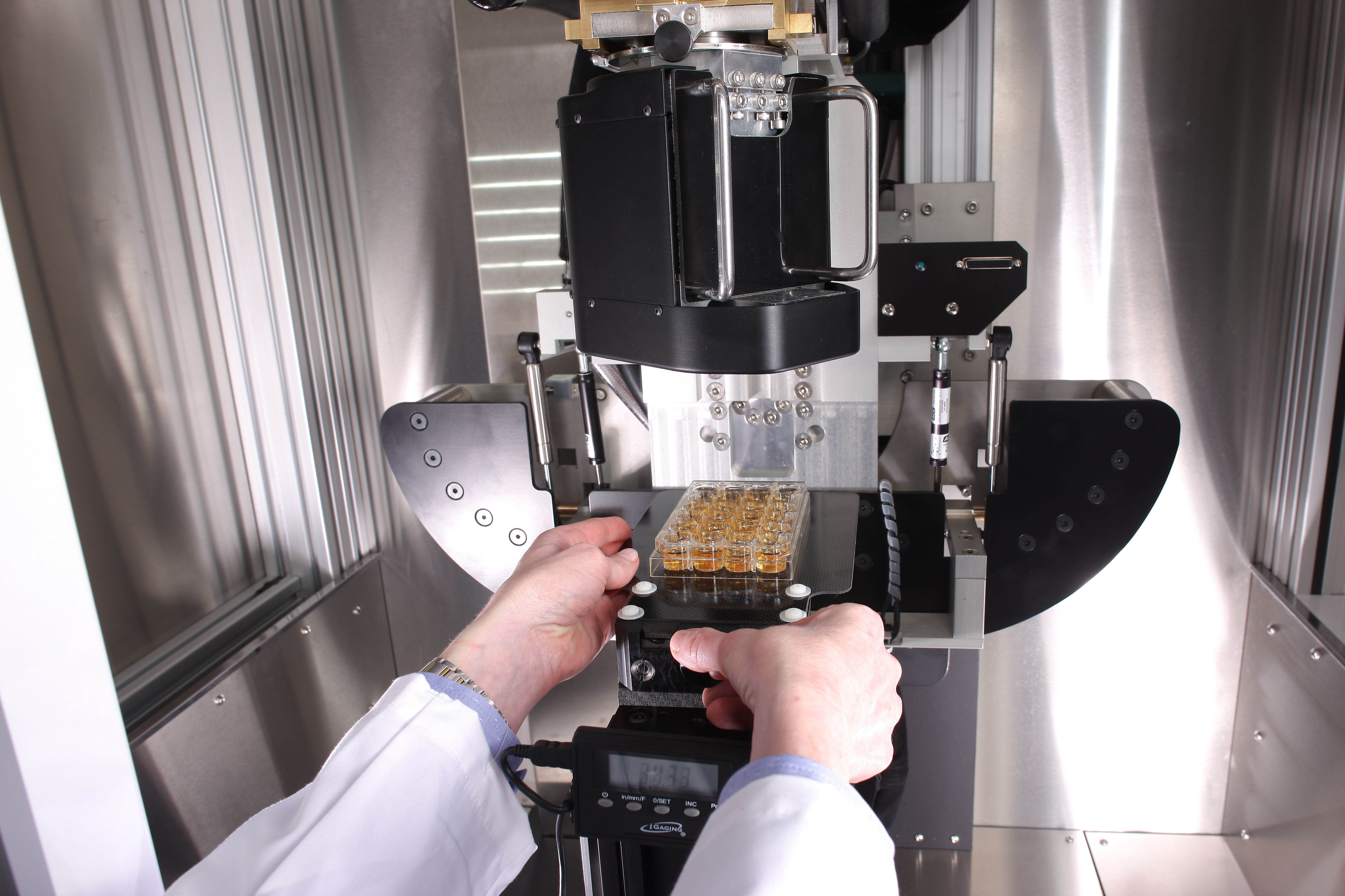 XenX improves the dose accuracy of in vitro experiments and irradiating specimens by replacing the fixed X-ray source with a 360 degree rotating gantry. The rotating gantry enables irradiation from above and below the stage and ensures that a uniform radiation dose to all suspended and adherent cells.